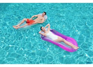 součástí lehátka je komfortní opěrku hlavy a průhlednou spodní část lehátko má 2 nafukovací komory a součástí balení je i záplata rozměry lehátka: 160 x 84 cm maximální nosnost lehátka: 90 kg