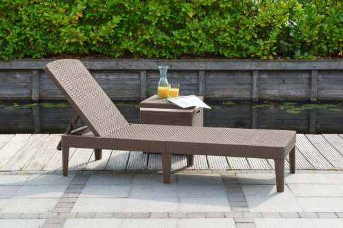 Plážové a zahradní lehátko Allibert Jaipur od Keter Group v cappuccinové barvě vás nadchne svým jednoduchým a moderním designem. Povrch připomíná svou strukturou přírodní ratan, ale na rozdíl od něj se vyznačuje vysokou odolností proti poškození, nežádoucím účinkům vlhkosti nebo UV záření. Tento produkt je z 87 % vyroben z recyklovaného plastu, takže jeho používáním pomáháte chránit přírodu.