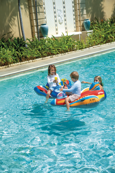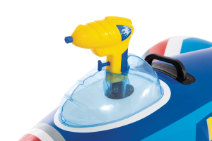 Nafukovací stíhačka s vodní pistolkou je letní venkovní hračka určená pro děti od 3 let, která kombinuje zábavu na vodě s aktivním hraním.