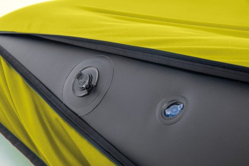 Nafukovací lehátko Luxe o velikosti 198×157 cm. Lehátko je ve dvou barvách – modré a žluté. Vhodné jak do bazénů, tak na venkovní rybníky, k moři. Snímatelný potah. Maximální nosnost je 200 kg a opravná záplata je součástí balení.