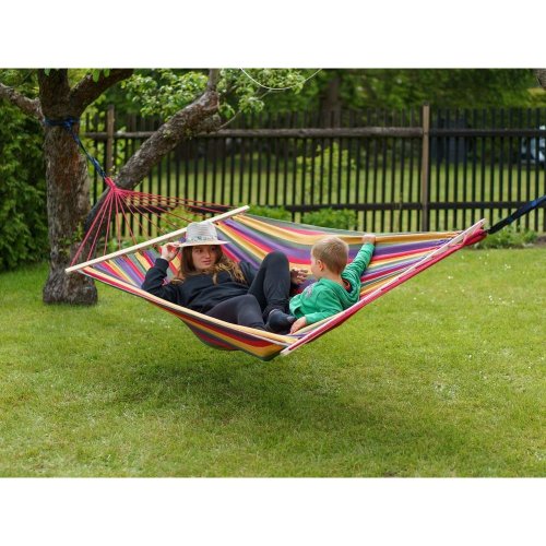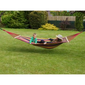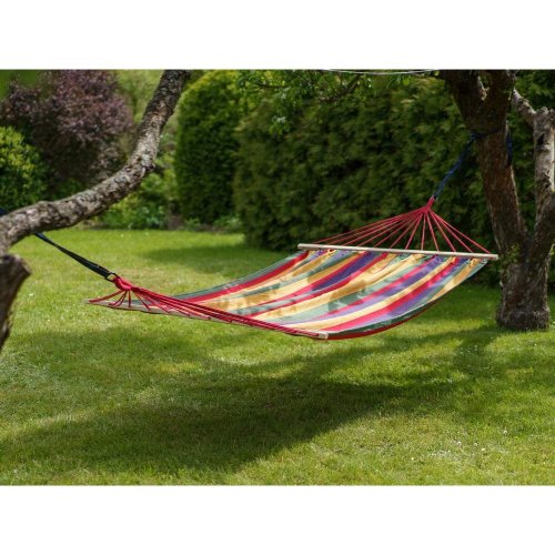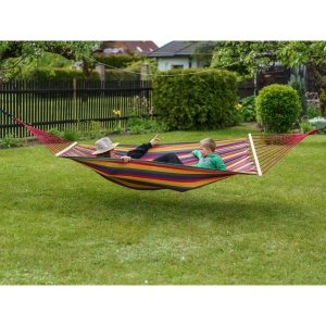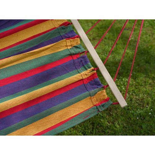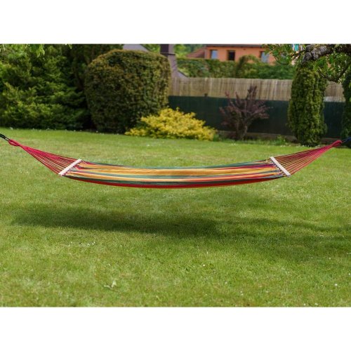 Lehátko závěsné houpací 200 x 150 cm, červenéZávěsné houpací lehátko je vhodné k relaxaci zejména na zahradě. Velikost látkového lůžka je 150 x 200 cm s dřevěnými vzpěrami. Lehátko je vyrobeno z bavlny a polyesteru. Nosnost: 100 kg. Délka (cm): 280 | Šířka (cm): 150 | Materiál: Bavlna / PES | Barva: Červená | Nosnost (kg): 100 | Hmotnost netto (kg): 2,46 | Hmotnost brutto (kg): 2,46 | Záruka (v měsících): 24 měsíců | Výrobce / značka: HAPPY GREEN