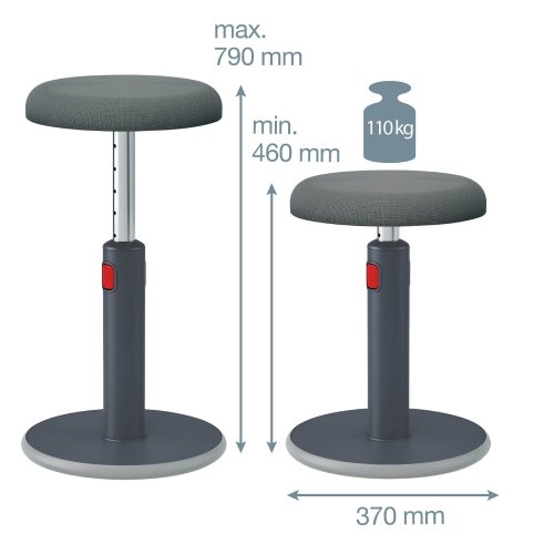 Ergonomická židle Leitz Ergo umožňuje flexibilitu pohybu mezi sezením a stáním při práci, podporuje pohyb svalů, zlepšuje držení těla a zvyšuje hladinu energie. Má zaoblenou základnu, která podporuje aktivní pohyb otáčením a houpáním. Zatímco pracujete, zároveň posilujete zádové svaly. Výšku lze snadno nastavit mezi 45-79 cm, stolička zůstává zůstane pevná a stabilní v jakékoli výšce. Stolička je pohodlná a praktická, má prodyšné 3D pěnové sedadlo potažené vzdušnou síťovinou a protiskluzovou základnu, která nepoškodí podlahu. Díky minimalistickému designu, matným povrchovým barvám a ergo řešení pomůže židle zlepšit zdraví a pracovní pohodu, a zároveň díky ní jednoduše vytvoříte správné a vhodné pracovní podmínky. Zkombinujte s dalšími produkty Leitz Ergo a získejte příjemný a flexibilní pracovní prostor, který vás udrží v pohybu a v pohodě po celý den.