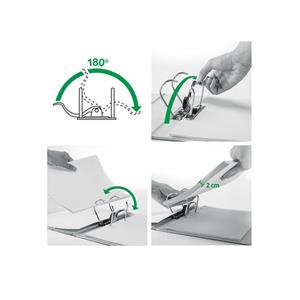 Unikátní patentovaná páková mechanika s otevřením o 180°, která umožňuje o 50 % širší otevření a o 20 % rychlejší práci s pořadačem