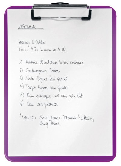 Vysoce kvalitní tvrdý plast (polystyrol) s lesklým povrchem v zářivých WOW barvách. Ideální pro zabezpečení papírů na cestách nebo během prezentací a projevů.