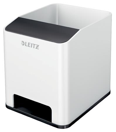 Výrazný moderní stojan na tužky v prémiové kvalitě značky Leitz, v módním dvoubarevném provedení a se stylovým lesklým povrchem. Unikátní design pro postavení smartphonu a zesílení jeho zvuku.