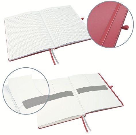 Vnitřní kapsa na přední a zadní straně zápisníku k uložení volných papírů a dalších drobností