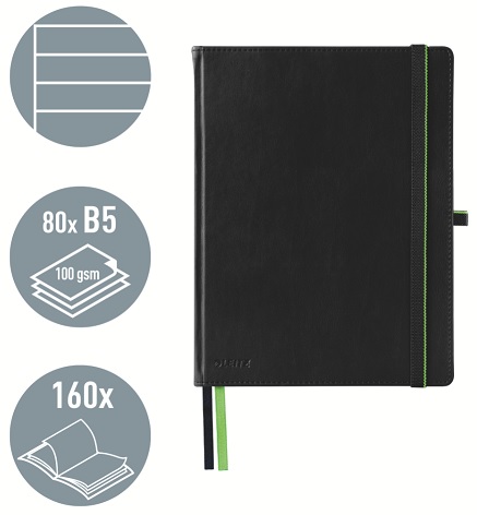 Prémiový zápisník v proslulé kvalitě značky Leitz. Moderní design pro každodenní pořizování poznámek. Atraktivní kožený vzhled (syntetická kůže), je příjemný na dotek. Inovativní prvky zajistí optimální organizaci Vašich poznámek. Dokonale doplňuje ostatní výrobky z řady Leitz Complete.