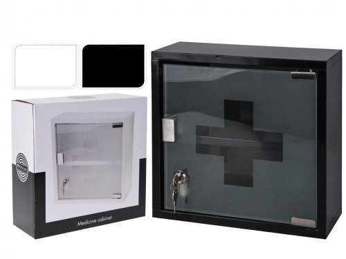 rozměry (Š x V x H): 30 x 30 x 12 cm nerezová ocel se skleněnými dvířky obsahuje 2 klíče bez výbavy barva: bílá, černá