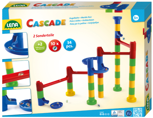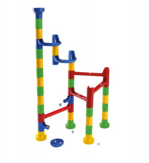 Kuličková dráha umožňuje sledovat cestu kuličky a její rychlost z horní části až dolů. Která kulička bude rychlejší a které sestavení dráhy bude zajímavější? Barevná kuličková dráha obsahuje spoustu překážek, které zvyšují napětí, zda kulička správně proběhne celou stavebnicí. Sestavit dráhu může dítě mnoha způsoby, dle vlastní fantazie. Stavebnice slouží k procvičení jemné motoriky a donutí dítě přemýšlet. Balení obsahuje 34 ks + 10 kuliček, v krabici. Rozměr krabice: 35 x 27 x 6 cm Vhodné od 3 let