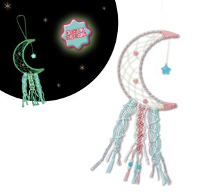 LENA Svítící lapač snů, Glow in the Dark Dreamcatcher, je kouzelná kreativní sada, díky které si děti mohou vyrobit vlastní lapač snů ve tvaru měsíce, který ve tmě svítí. Kreativní hračka podporuje jemnou motoriku, trpělivost, fantazii a přináší dětem radost z tvoření i krásnou dekoraci do pokoje.Součástí sady je kovový rám ve tvaru měsíce, svítící nit, barevné příze, korálky, hvězdičky, dekorativní doplňky a podrobný barevný návod, díky kterému si děti snadno vytvoří vlastní originální lapač snů. Po nasvícení září ve tmě, takže je ideální jako svítící dekorace do dětského pokoje, nad postel, k oknu nebo na zeď.Skvělý kreativní dárek pro holky od 8 let, které milují tvoření, módní doplňky a stylové svítící dekorace. Hlavní vlastnosti: kreativní sada Glow in the Darklapač snů ve tvaru měsíce, který svítí ve tměobsahuje kovový rám, svítící nit, korálky, dekorativní hvězdičkypodrobný barevný návod krok za krokemkrásná svítící dekorace do dětského pokojerozvíjí kreativitu, trpělivost, jemnou motoriku a fantaziiskvělý dárek pro holky od 8 let