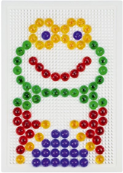 Skládej a vytvářej svůj vlastní svět plný krásných obrázků do mřížkované podložky. Poskládej si bagr nebo si vytvoř třeba domeček. Je to jen na tobě. Tvoř znovu a znovu díky 120 kusům plastových hlaviček o průměru 1,5 cm, které na desce umístíš přesně na místo, kam se ti bude hodit!