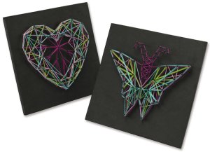 Kreativní sada s motivem srdíčka a motýla, které jsou předtištěny na černých deskách. Pomoci neonových bavlnek si můžete vyrobit kouzelnou dekoraci do pokojíčku nebo originální dárek. Hlavní vlastnosti: rozvíjí kreativitu vhodné pro děti od 8 letvhodné jako dárek