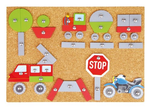 Tvůrčí zábava nikdy nekončí. S tímto kladívkem, dílky a korkovou deskou můžete vytvořit různé druhy dopravních prostředků. Sada obsahuje: 48 barevných dílků, 16 potištěných speciálních dílů, kladivo a hřebíky a korkovou desku: 27 x 20,5 cm. Hlavní vlastnosti: podporuje kreativitu a koncentracipodporuje jemnou motoriku