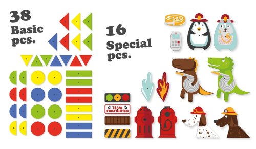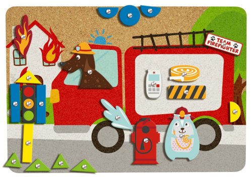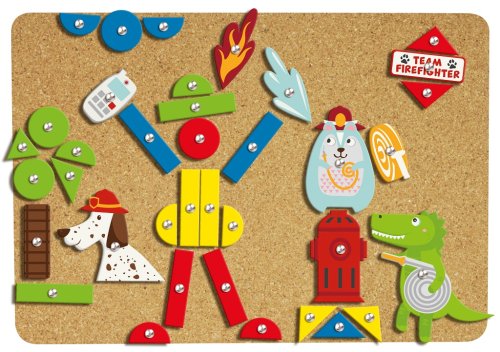 Tvůrčí zábava nikdy nekončí. S tímto kladívkem, dílky a korkovou deskou můžete vytvořit mnoho podob hasičského zásahu. Sada obsahuje: 38 barevných dílků, 16 potištěných speciálních dílů, kladivo a 60 hřebíků a také korkovou desku s natištěným hasičským motivem. Hlavní vlastnosti: podporuje kreativitu a koncentracipodporuje jemnou motoriku