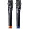 Sada dvou bezdrátových mikrofonů s jedním společným přijímačem Dynamický bezdrátový mikrofon s kovovou mřížkou 2 ks Pracují na pevných frekvencích 863,5 a 864,5 Mhz Bezdrátový mini přijímač s konektorem 6,3 mm jack Dosah 10 – 15 m Frekvenční rozsah 60 - 15000 Hz Odstup signálu šum SNR 85 dB Maximální hladina akustického tlaku 130 dB Přijímač s vestavěnou dobíjecí baterií (Li-on 3,7 V 2000 mAh) Včetně nabíjecího kabelu a 2x 2 AA baterie Rozměry mikrofonu: 5,5 x 25,5 cm