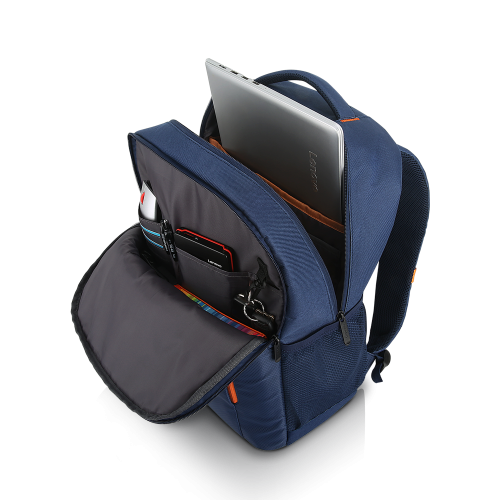 Moderní batoh Lenovo Backpack B515 je určený pro notebooky, s maximální úhlopříčkou 15.6". Batoh je modrý, s oranžovými doplňky.