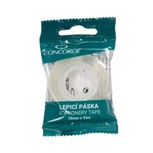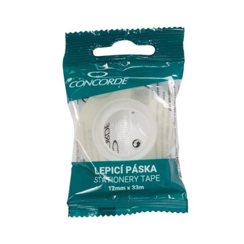 Transparentní lepící páska CONCORDE pro univerzální použití v domácnostech i kancelářích Páska je vyrobena z polypropylenu Baleno v závěsném sáčku Rozměry: šíře 12 mm, návin 33 m