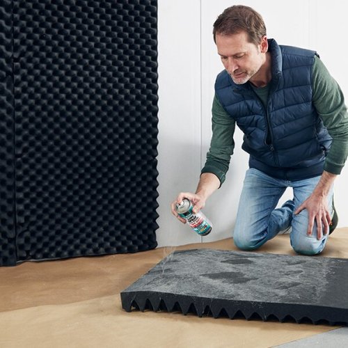 Rozsah použití:, * silné, rychlé a pevné plošné lepení, * slepí např. papír, lepenku, dřevo, textil, kůži, kov, plsť, pěnový polystyren (styropor) a jiné pěnové hmoty, četné umělé hmoty se stejnými jiným materiálem, Tři metody lepení:, * Kontaktní lepení: Plochy určené ke slepení nastříkejte na obě strany a nechte 10 minut zaschnout. Pak přiložte obě části k sob a krátce silně přitiskněte., * Lepení s korekcí: U lepených povrchů, kde je minimálně jeden porézní (savý). Je možné nanést lepidlo pouze na jeden lepený povrch. Ihned materiály spojit. Korekce je možná po dobu, 5 minut. Doba schnutí cca 24 hodin., * Opakovaně odstranitelné lepení: Lepidlo nastříkejte na jednu plochu a nechte 20 minut zaschnout. Vytvoří se (samolepící/stále lepící) vrstva a je možné opakované nalepení a, odlepení materiálu.
