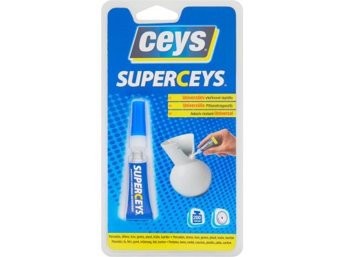 Vteřinové lepidlo SUPERCEYS 3g je sekundové kyanoakrylátové lepidlo vysoké pevnosti a velice jednoduchého použití, je ideální pro rychlé drobné opravy a po zaschnutí je transparentní.