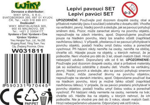 Zábava pro malé i velké! Hoďte pavouky samostatně nebo po jednom kamkoli a sledujte, jak se plazí po stěnách, dvěřích, oknech nebo zrcadlech a nezanechávají stopy! Pokud pavouček ztratí svou lepivost, jednoduše opláchněte vodou a osušte papírovou utěrkou. V balení je 12 kusů. Velikost pavoučka: 3 cm Vhodné pro děti od 3 let