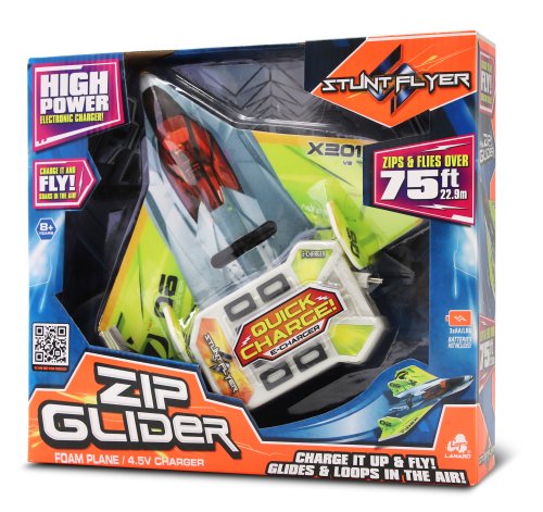 Letadlo házecí elektrické Zip Glider. Rozpětí křídel 23cm. Dolet až 22,9 m. Letadlo je rychlodobíjecí. Návod na nabíjení na zadní straně obalu. Připojte letadlo na nabíječku, přes nabíjecí port na spodní straně. Podržte tlačítko na nabíječce na 30 vteřin. Odpojte z nabíječky a můžete létat. 4,5V nabíječka. Letadlo je pěnové. Baterie 3xAA/LR6 (1,5V), nejsou součástí balení.