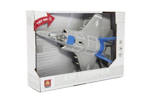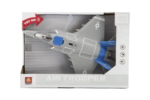 Každý malý voják musí mít pořádnou stíhačku. Tato stíhačka je vyrobena z kvalitních materiálů. Letadlo je na baterie 3x AG13 (jsou součástí výrobku), se zvukem a světlem. Rozměry balení 32 x 23 x 9 cm. Vhodné pro děti od 3 let.