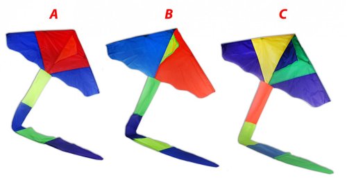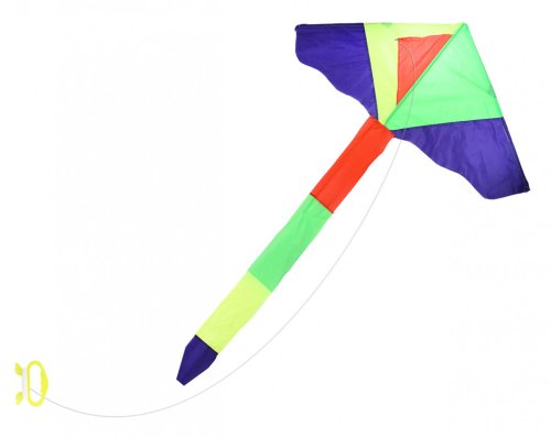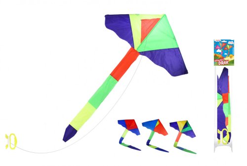 Barevný nylonový drak ve tvaru rogala. Barvy se mohou lišit. Dodáváme dle skladové dostupnosti. Drak má jeden úchyt na ovládání.