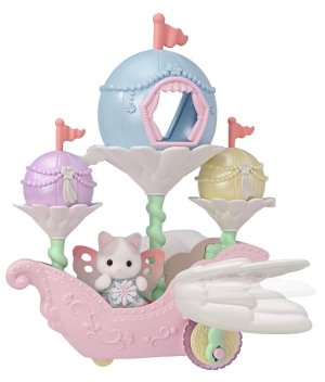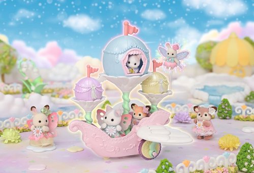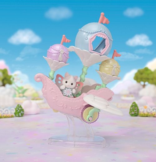 Létající loď květinových víl vás zve na cestu do nebeského, magického světa. Sada obsahuje roztomilou figurku miminka Pino Fontana z rodiny Latte koček v kostýmu květinové víly. Létající vozidlo je vybaveno křídly, která se pohybují nahoru a dolů, když vozidlo jede po rovině. Vozidlo pojme několik baby figurek, přičemž jednu z nich lze připevnit na speciální úchyt, což vytváří dojem, že figurka se vznáší nad vozidlem. V květinových kalichách, které vyrůstajících přímo z vozidla se nacházejí barevné balónky, z nichž jeden slouží jako komnata, do které se vejde figurka květinové víly Sylvanian Families. Létající vozidlo může být skvělým nápadem na dekoraci domu nebo bytu. Hračky Sylvanian Families podporují představivost a vybízejí děti k hraní rolí. Hra s figurkami rozvíjí kreativitu a učí emocím vytvářením a vyprávěním příběhů založených na každodenních zážitcích a pozorování světa. Vyznačují se nejvyšší kvalitou a výjimečným důrazem na detaily. Figurky Sylvanian Families mají pohyblivé končetiny a hlavu. Baleno v krabičce. Rozměry balení: 18 x 20 x 12,5 cm. Věk: 3+