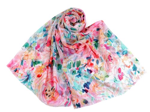 Šátek s barevným vzorem je lehounký a vzdušný, velice příjemný na dotek. Je jemně průsvitný, na koncích má jemné třásně. Doladí váš outfit, ať už si vezmete sako, halenku, svetřík či šaty. Šátky mají špatné štítky, skutečné složení je 100% polyester. Omlouváme se za toto nedopatření a děkujeme za pochopení.