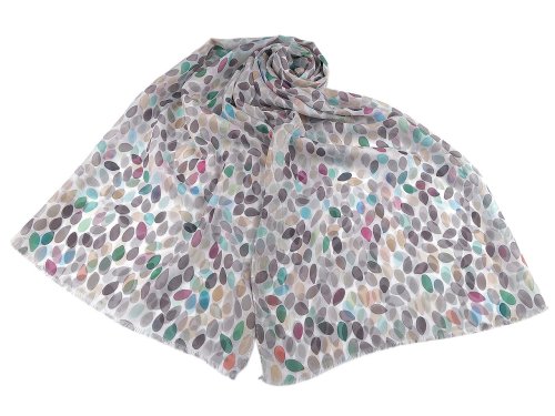 Šátek s barevným vzorem je lehounký a vzdušný, velice příjemný na dotek. Je jemně průsvitný, na koncích má jemné třásně. Doladí váš outfit, ať už si vezmete sako, halenku, svetřík či šaty. Šátky mají špatné štítky, skutečné složení je 100% polyester. Omlouváme se za toto nedopatření a děkujeme za pochopení.