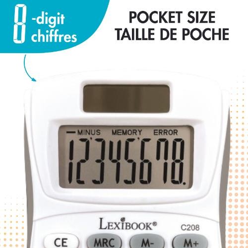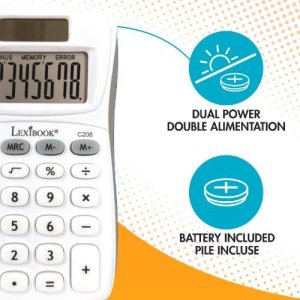 Kapesní kalkulačka Lexibook je navržena pro snadné a rychlé provádění základních matematických operací s až osmi číslicemi na displeji. Její kompaktní rozměry 10,1 x 5,8 cm umožňují pohodlné přenášení a použití kdekoliv, což ji činí ideální volbou pro studenty i běžné uživatele, kteří potřebují spolehlivý a přenosný nástroj pro rychlé výpočty. Kalkulačka je vybavena solárním panelem, který zajišťuje napájení za denního světla, a zároveň je doplněna o záložní baterii typu LR54, jež je součástí balení, čímž je zajištěna její funkčnost i při nedostatku světla.