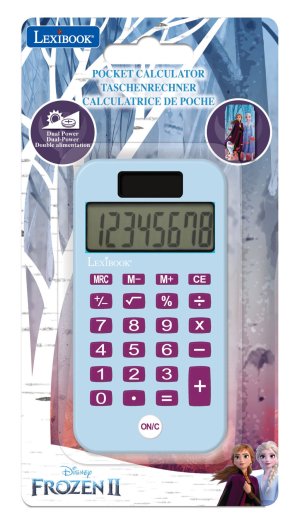 Lexibook kapesní kalkulačka s motivem Ledového království je navržena především pro děti, které potřebují praktický a zároveň zábavný nástroj pro školní použití. Kalkulačka má kompaktní velikost, díky níž se pohodlně vejde do dětské peněženky nebo školní tašky. Její design je výrazně laděn do modrých odstínů, doplněných o ilustrace postav z populárního animovaného filmu Frozen, což z ní dělá atraktivní pomůcku pro malé fanoušky tohoto tématu.