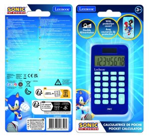 Lexibook kapesní kalkulačka Sonic je elektronické zařízení určené především pro děti, které kombinuje praktickou funkci kalkulačky s populárním motivem postavičky Sonic. Kalkulačka je navržena v kompaktním formátu, který snadno padne do ruky a lze ji pohodlně nosit v kapse či školním pouzdře. Její design je výrazně inspirován modrým ježkem Sonicem, což se odráží v barevném provedení a grafickém motivu na přední straně. Tmavě modré tělo kalkulačky doplňují světlé tlačítka a barevné detaily, které zvyšují vizuální atraktivitu produktu.