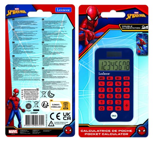 Kapesní kalkulačka Lexibook s motivem Spidermana je určena především pro školní použití a dětskou elektroniku. Tento model je vhodný pro děti, které chtějí mít svou vlastní praktickou pomůcku s oblíbeným superhrdinou. Kalkulačka je zařazena do kategorie elektronické zábavy, což naznačuje, že kromě základní funkce počítání může sloužit i jako zábavný doplněk pro mladší uživatele.