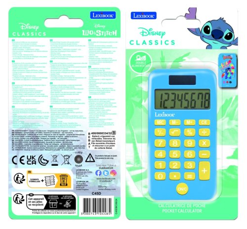 Lexibook kapesní kalkulačka Stitch je elektronické zařízení určené především pro děti a žáky, které kombinuje praktickou funkci kalkulačky s oblíbeným motivem z animovaného filmu Stitch. Tento produkt spadá do kategorie elektroniky pro děti a představuje jednoduchý způsob, jak usnadnit základní matematické výpočty ve školním prostředí. Kalkulačka je navržena tak, aby byla snadno přenosná a pohodlná pro použití kdykoli a kdekoli.