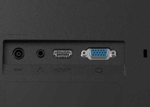 Monitor je vybaven HDMI 2.0 portem s HDCP 2.3, VGA vstupem a výstupem pro sluchátka. V balení je dodáván HDMI kabel pro okamžité připojení.