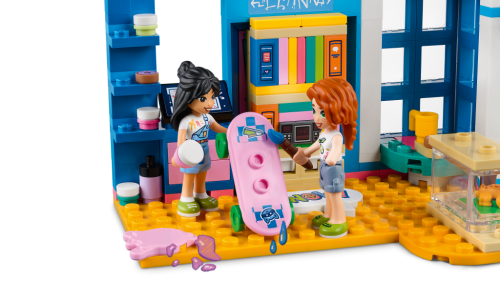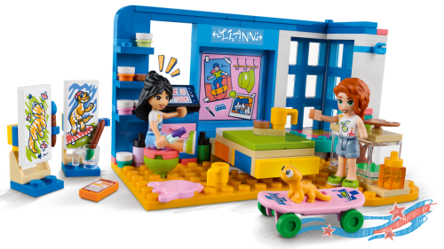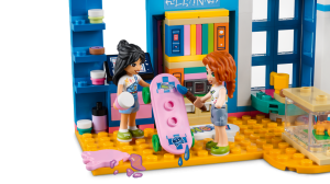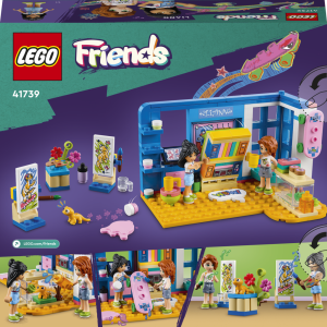 Umělecky založené děti od 6 let budou mít díky stavebnici Liannin pokoj (41739) od LEGO® Friends stále co objevovat. Těšit se mohou na umělecký stůl, výklenek s oknem a skrytou postel. Přátelství mezi energickou Liann a pohodářkou Autumn jim nabídne spoustu podnětů ke zkoumání. Děti mohou mimo jiné namalovat Liannina gekona jménem Popcorn. Součástí je také spousta doplňků, které inspirují ke kreativnímu hraní s uměleckými materiály, včetně tub s barvou, palet a stojanů. Nechybí ani koblihy, hrníčky, komiksy, skateboard, mobilní telefon, pero a terárium pro gekona Popcorna.