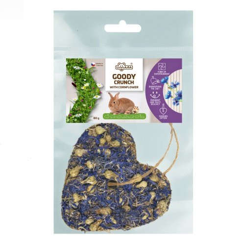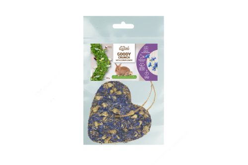 Dopřejte svému mazlíčkovi voňavou a zdravou odměnu. Toto ručně lisované bylinkové srdce s jemnými květy chrpy potěší chuťové buňky králíků i drobných hlodavců, podpoří jejich přirozené okusování a zpestří každodenní stravu.