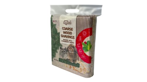 Hrubá hoblinová podestýlka určená pro zajícovce, hlodavce, koně, psy, vybraná terarijní zvířata a ptactvo s listy jahodníku, jakožto formou pamlsku. Hobliny jsou vyrobeny z měkkého dřeva a jsou tak vhodné i pro chov hlodavčích samců.