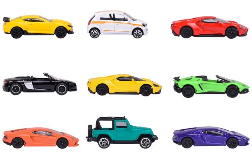 Dárková sada 13 ks kovových autíček, 9 běžných autíček a 4 autíčka z limitované edice 9. Délka auta 7,5 cm.