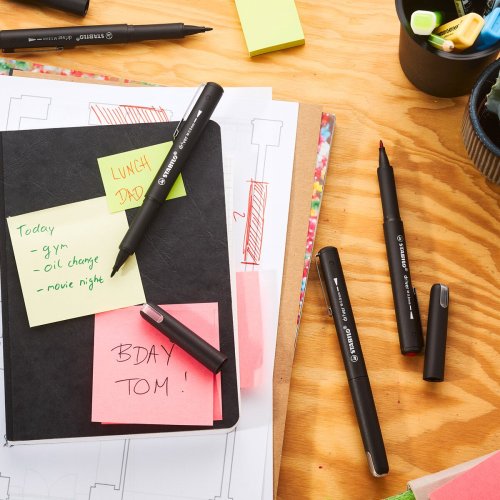 Šíře stopy 0,8 mm., * vhodný pro psaní i rýsování podle šablony nebo pravítka, * hrot zasazený v kovovém pouzdře pro dlouhou životnost, * protiskluzová měkká gumová úchopová zóna, * praktická kovová spona pro použití na cestách, * nesmývatelný, vodou ředitelný inkoust, * bez zápachu