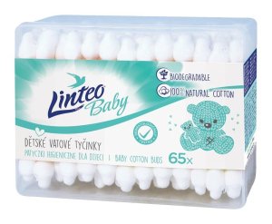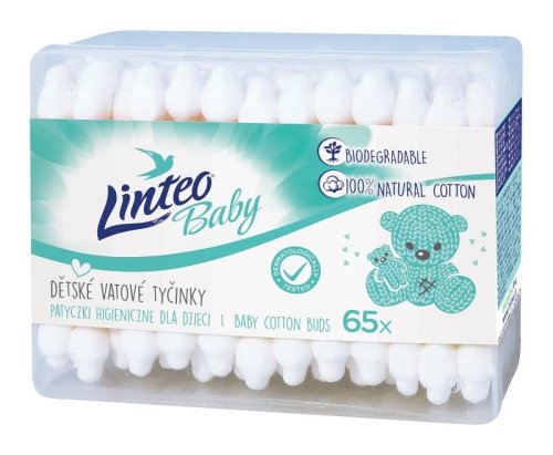 Vatové tyčinky Linteo jsou vyrobeny ze 100% bavlny a 100% recyklovaného papíru. Speciální tvar chrání před proniknutím tyčinky hlouběji do ouška. Jsou vhodné pro hygienu těch nejmenších. Stoprocentní bavlna a pevný návin zaručují bezpečný způsob používání. Tyčinky jsou vyrobeny ze 100% bavlny a papírové tyčinky.