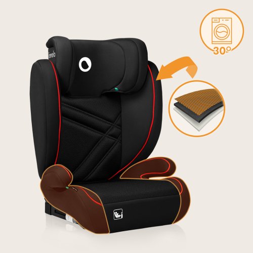 Nejvyšší bezpečnostní standard: Opěrka hlavy je vyrobena z PP plastu a pěny Memory Foam, která má vlastnosti pohlcující přetížení, díky čemuž chrání hlavu a krční páteř dítěte. Zase plastová vodítka pomohou nejen správně připoutat dítě, ale také udržují pás na správném místě.