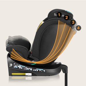 Čtyřstupňové nastavení opěradla funguje jak při montáži po směru, tak proti směru jízdy. Pomáhá zabránit problému padání hlavy při spánku v autě, což výrazně zvyšuje bezpečnost dítěte. Nastavení polohy opěrky hlavy (vyztužené polystyrenem EPS) bylo integrováno s výškovým nastavením popruhů, takže sedačku lze jediným pohybem přizpůsobit aktuální výšce dítěte. Díky širokému a pohodlnému sedadlu a redukčním vložkám v systému Dri-Seat podporujícím proudění vzduchu je sedačka pohodlná pro menší i větší uživatele. Větraná polypropylenová skořepina zajišťuje bezpečné a pohodlné cestování i v horkých letních dnech.