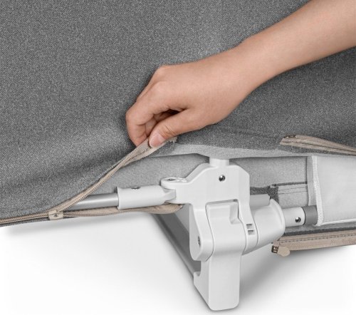 dvojitý uzamykací mechanismus proti náhodnému otevření horní část s měkkou pěnovou ochranou zabezpečuje ochranu dítěte opírajícího se o zábranu robustní pevná konstrukce jednoduché složení přepravní taška vhodná na cesty vejde se pod postel i do skříně zajišťuje pohodlný a bezpečný spánek určeno pro matrace o tloušťce min. 12 cm a max. 25 cm