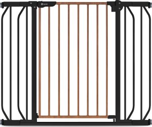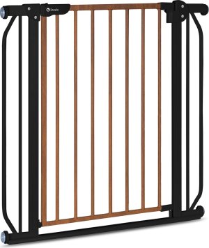 vyrobeno z oceli jednoduchá montáž originální nátěr imitující dřevo silikonové prvky chrání zeď nebo dveře před poškozením bez ostrých hran lze otevírat na obě strany dvojitý zámek proti otevírání snížená výška prahu na 1,5 cm montáž do průchodu o šířce 75 - 105 cm výška: 76,5 cm