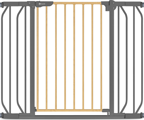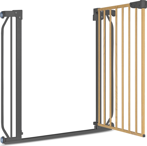 vyrobeno z oceli jednoduchá montáž originální nátěr imitující dřevo silikonové prvky chrání zeď nebo dveře před poškozením bez ostrých hran lze otevírat na obě strany dvojitý zámek proti otevírání snížená výška prahu na 1,5 cm montáž do průchodu o šířce 75 - 105 cm výška: 76,5 cm