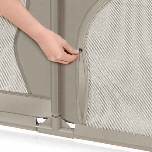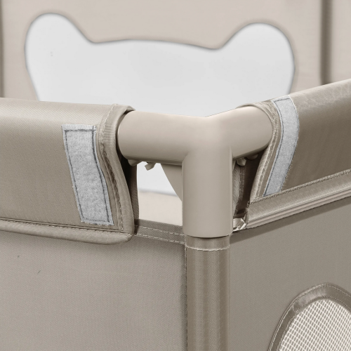 konstrukce je vyztužena ocelovými trubkami o průměru 2,5 cm, síťové strany zajišťují neustálý proud vzduchu a poskytují dobrou viditelnost, chráněné pěnové trubky a konstrukční prvky na vnější straně zaručují úplné bezpečí, ohrádka má dva boční vchody a zip, výrobek lze rozložit a složit bez použití nářadí, součástí balení je i praktická taška na přenášení, materiál ohrádky je snadno čistitelný, v rozích jsou přísavky, které zajišťují fixaci ohrádky na místě.