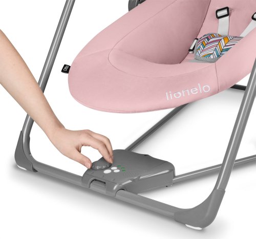 Pevný a stabilní ocelový rám, tiché a energeticky úsporné houpání, 5 rychlostí houpání měkké a odnímatelné polstrování (lze prát ručně), polštářek po podepření hlavičky dítěte, 5ti-bodové bezpečnostní pásy, hrazdička s interaktivními hračkami - po zmáčnutí vydávají zvuky, rozvíjí představivost a motoriku, USB kabel (pozn. síťový adaptér pro USB kabel není součástí balení) , časovač houpání, napájení 2 způsoby: přiloženým napájecím zdrojem nebo 4 ks baterií LR14 (baterie nejsou součástí výrobku), snadno se skládá.