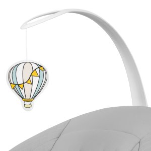 Zábava: V zařízení je předinstalováno až 12 klidných melodií s nastavitelnou hlasitostí, které účinně uklidňují miminko. Nastavitelný oblouk s hračkami mezitím udržuje pozornost dítěte a povzbuzuje jej k natahování rukou. V případě potřeby jej lze také demontovat.